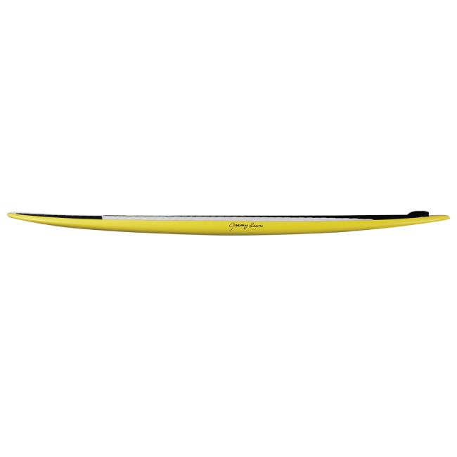 Equipée de 2 ailerons latéraux sur boitiers Furture Fins et d’un aileron central en US box. Construction Jimmy Lewis Sandwich PVC/VERRE/EPOXY